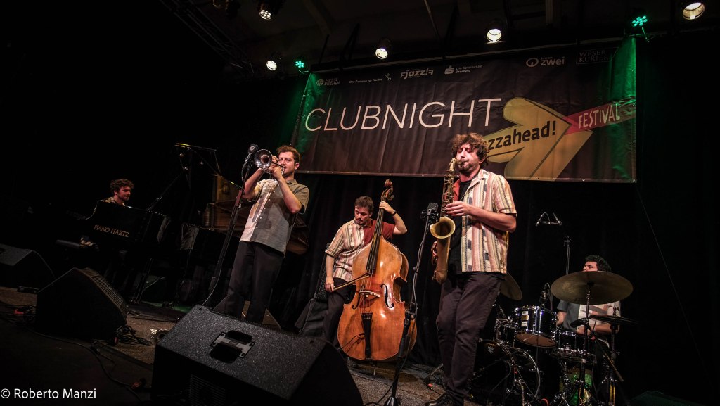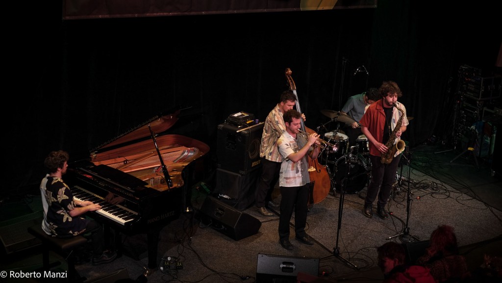 In addition to the leader on piano, the band includes four of the most distinctive voices of Italy’s emerging generation: Jacopo Fagioli on trumpet, Francesco Panconesi on tenor saxophone, Amedeo Verniani on double-bass and Mattia Galeotti on drums: what might seem like a classic trumpet-tenor-piano-bass-drums quintet is brought to the cutting edge thanks to the leader’s exceptional compositional vision, and by the outstanding creative personalities of the five young musicians.